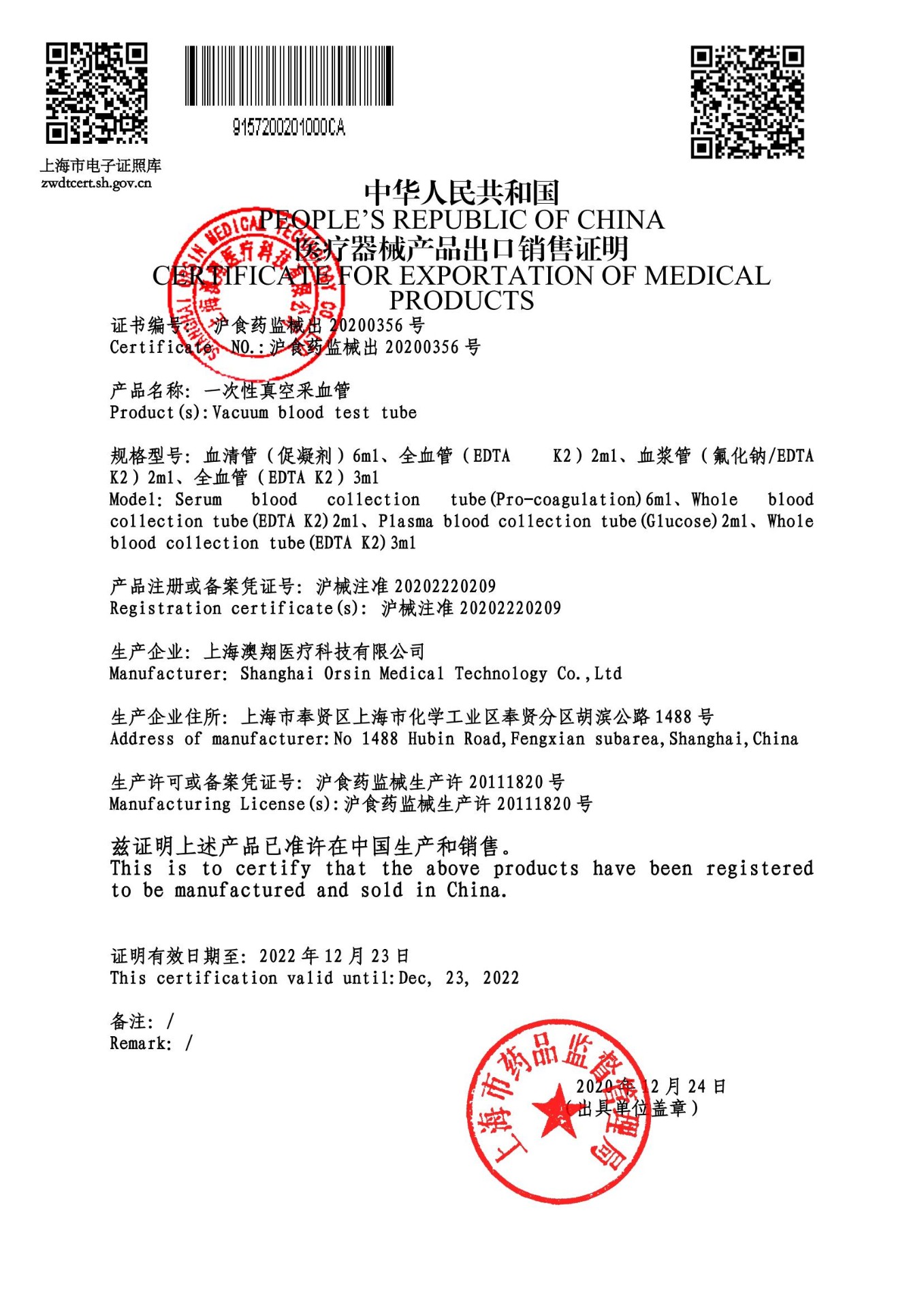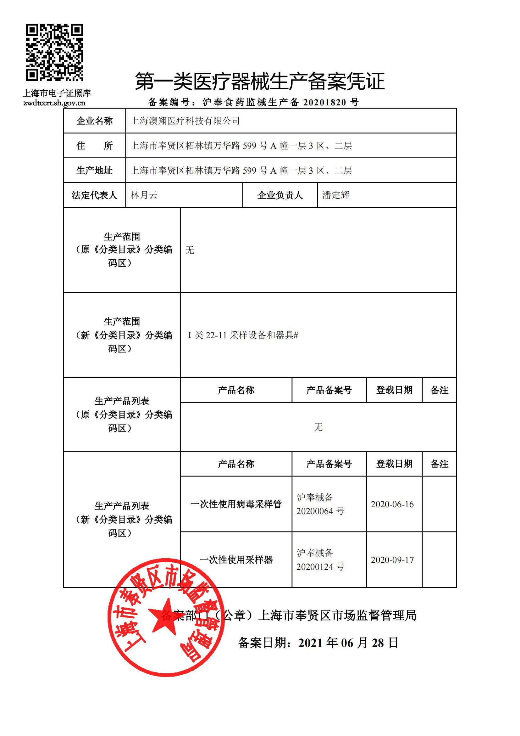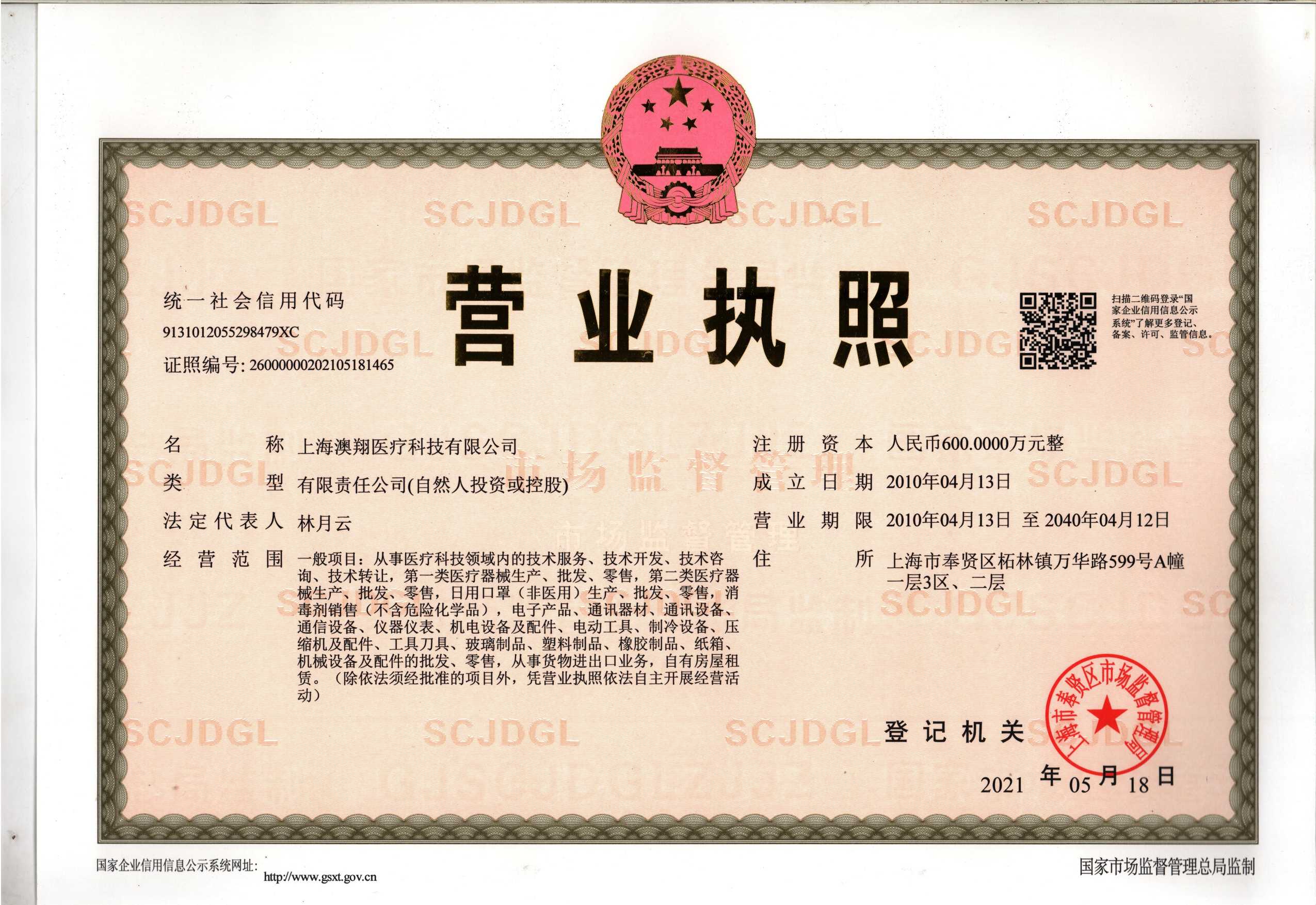 上海澳翔医疗科技有限公司 成立于2009年5月. 为达到科学、规范、高效的管理好公司,本公司按照ISO 9001:2008、ISO13485:2016和98/79/EEC建立我们自己的质量管理体系。 并于2011年3月通过了CE体系认证.