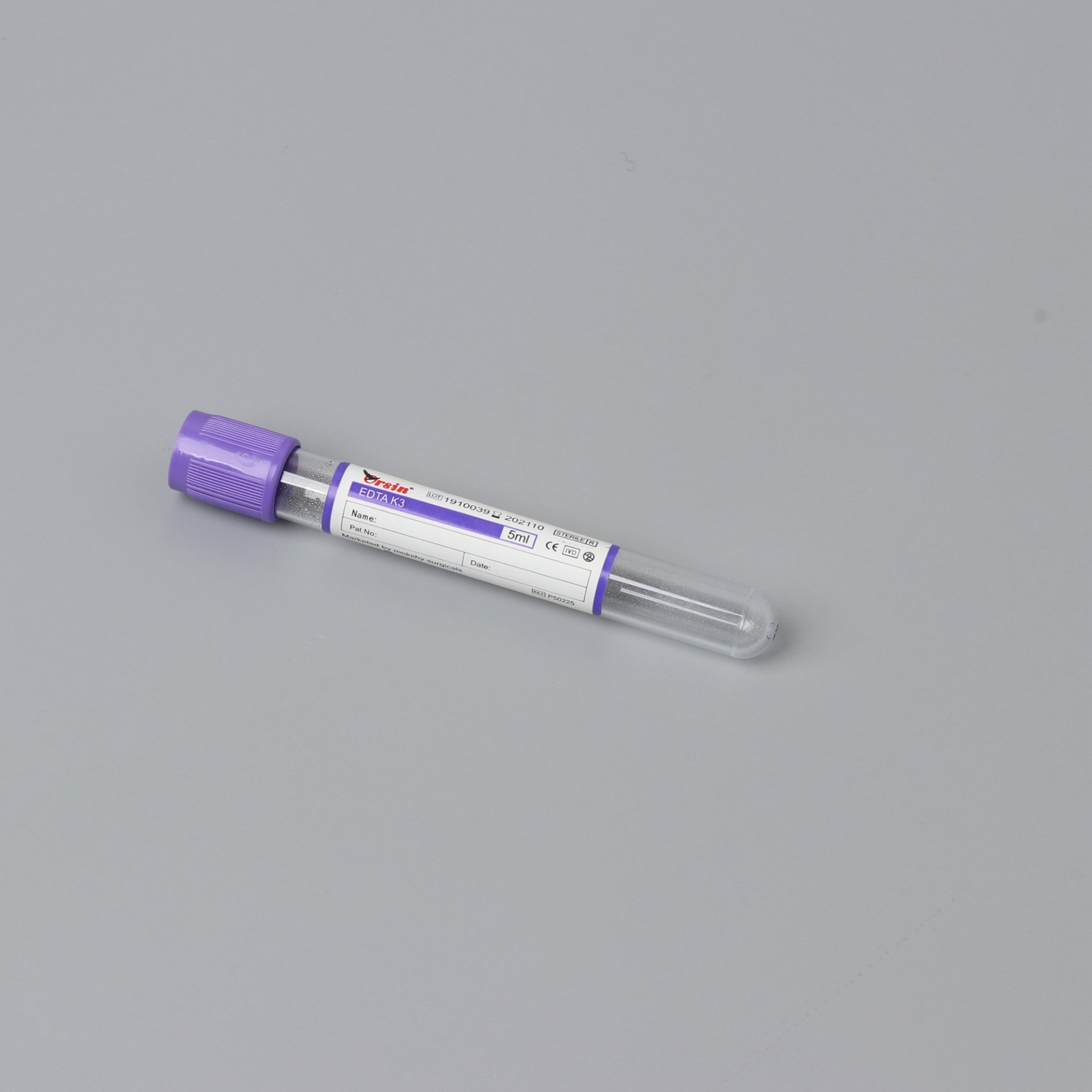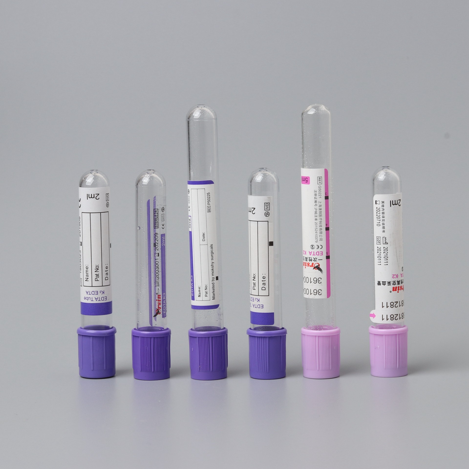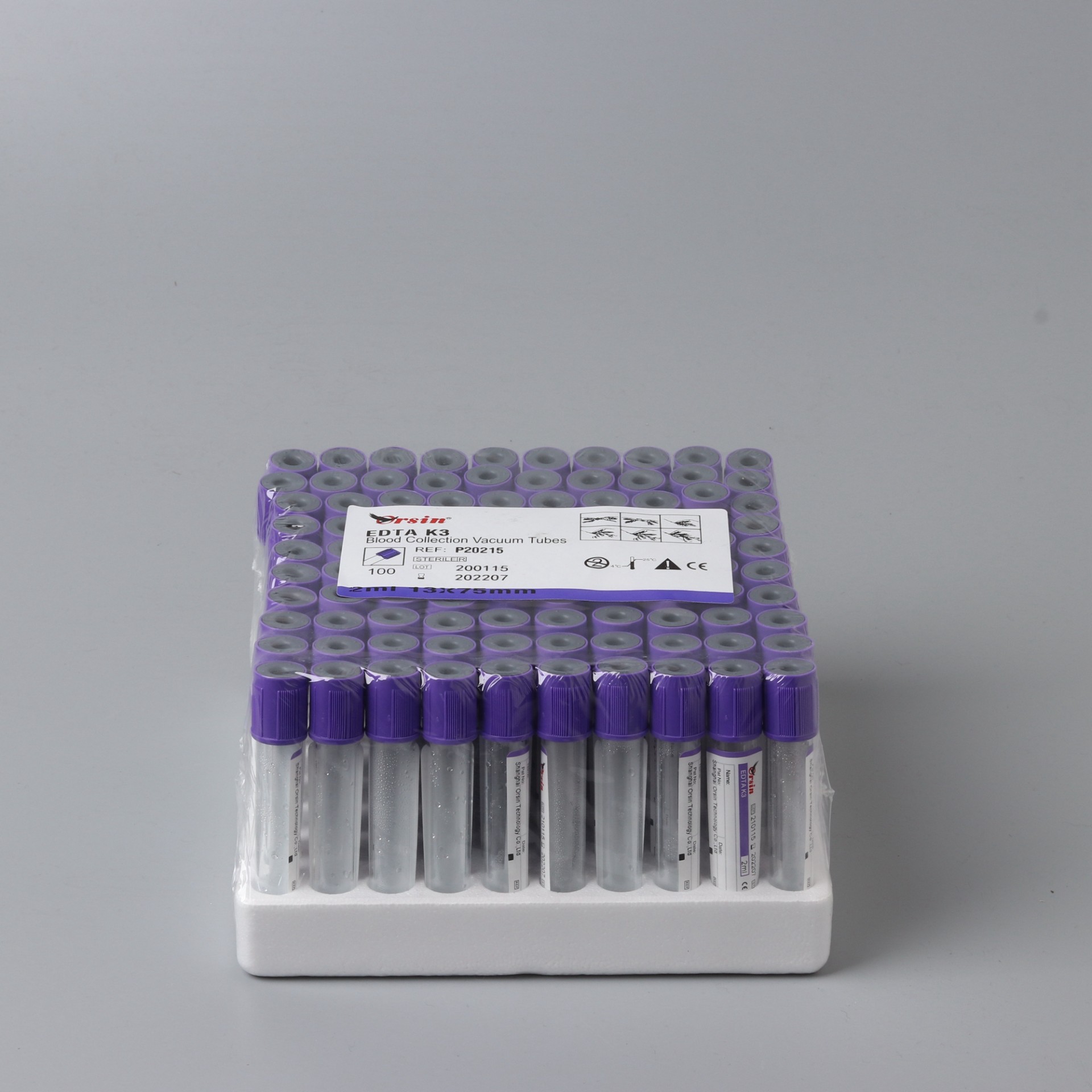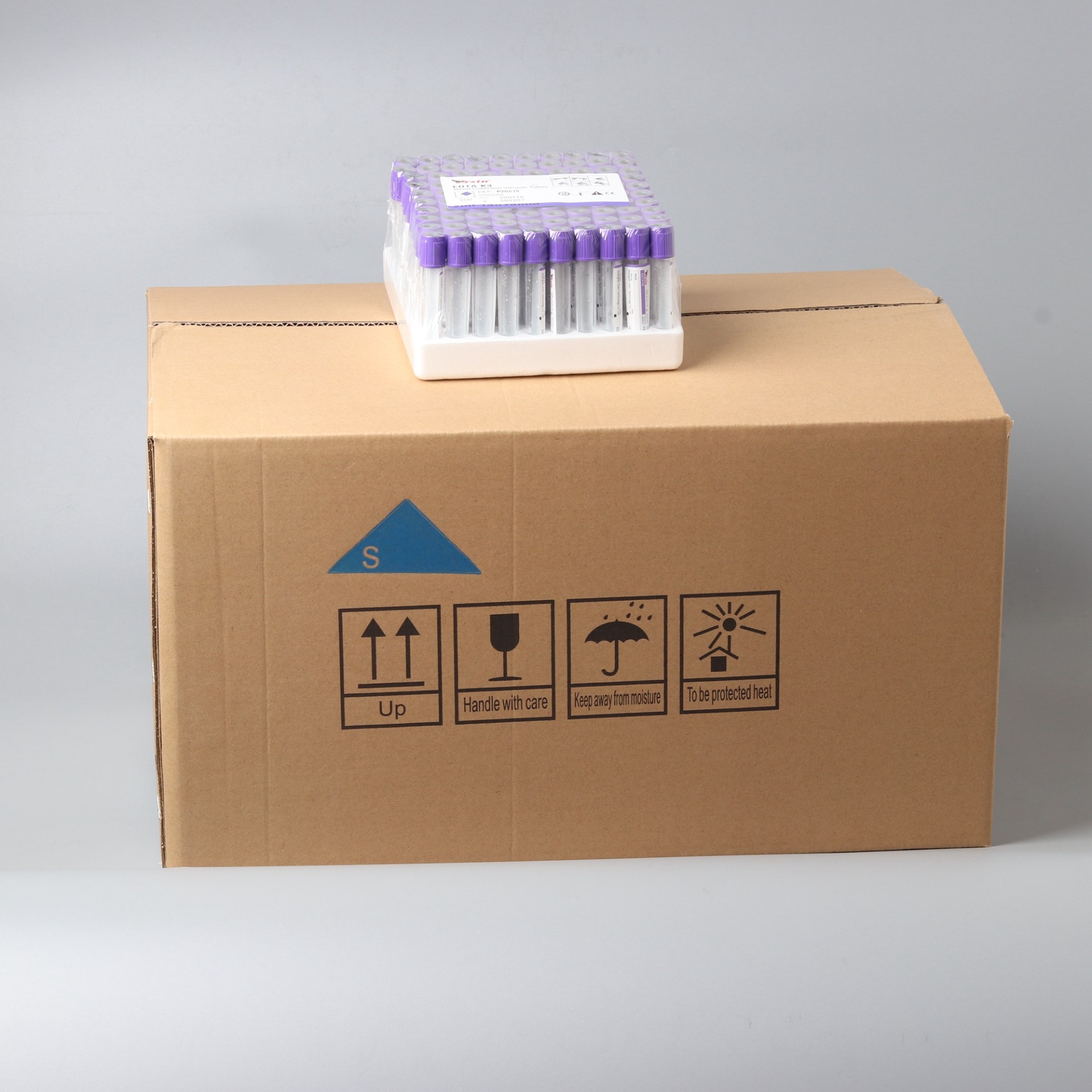 紫头管中的抗凝剂为 EDTA 盐。国际血液委员会推荐使用抗凝效率较高 , 稳定性更强 , ph 值与血液相对接近的乙二胺四乙酸 · 二钾(EDTA.K2)。 独一无二的内壁仿生活性膜处理 , 有效地维持了血小板的活性稳定。微喷雾技术的运用降低 了因血小板黏附与聚集而发生血小板损失和凝血的风险 ,严格的微粒污染控制工艺杜绝了微粒污染对检验结果的影响。 Purple cap use EDTA salt as anticoagulant. ICSH recommends using EDTA.K2, which is with higher anticoagulation efficiency, stronger stability and relatively closer ph value with blood. The unique imitated life film treatment on its inner wall can effectively maintain the active stability of platelet. The application of micro atomizing technology has lowered the hazard of platelet loss and blood coagulation caused by platelet adherence and gathering. And the rigorous particle pollution control technology has completely eradicated the impact on test result caused by particle pollution.
