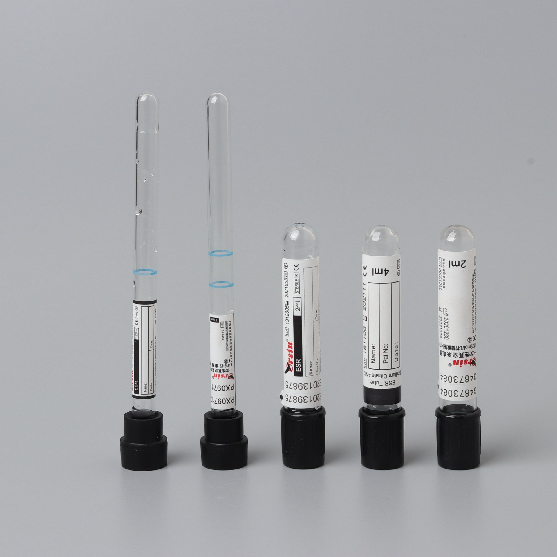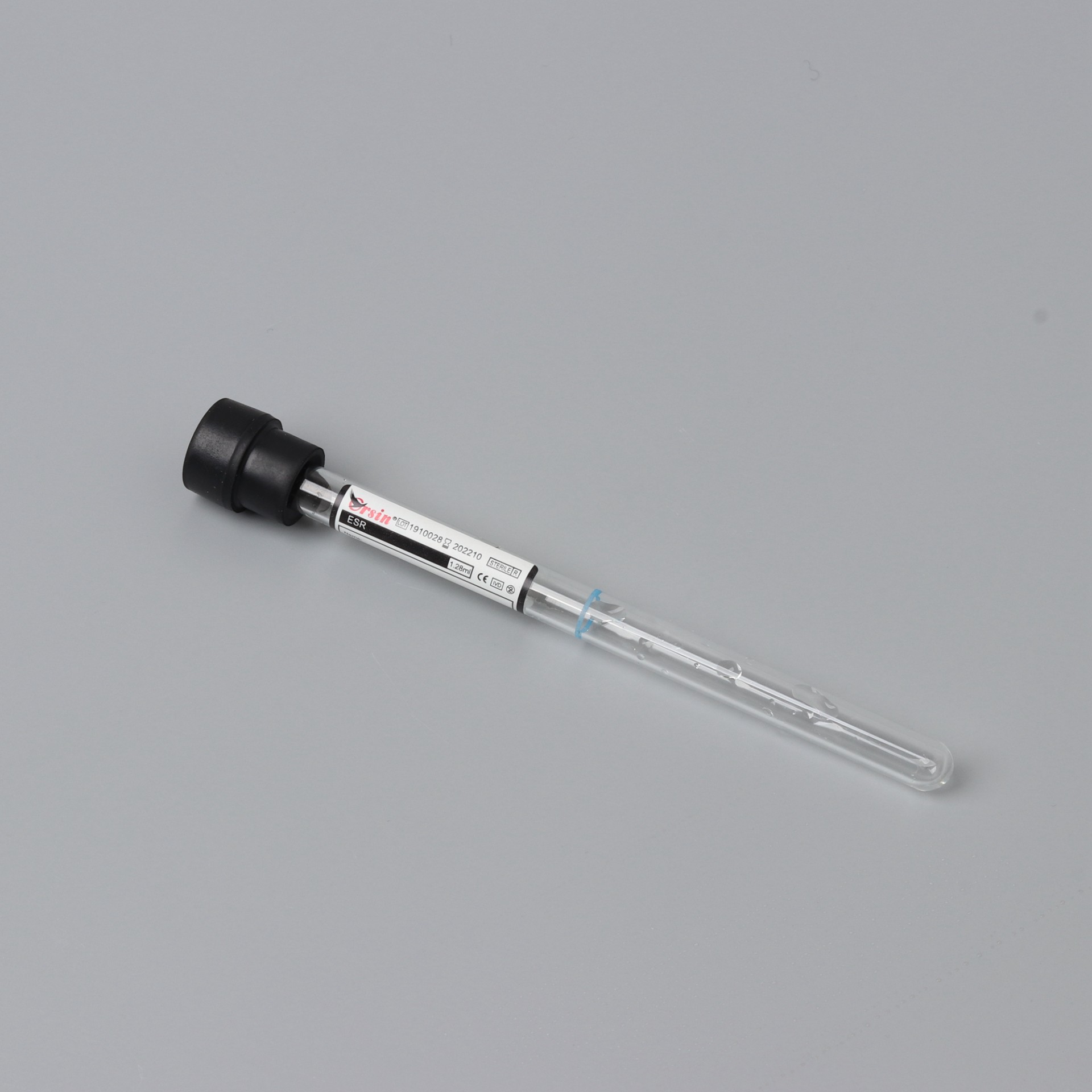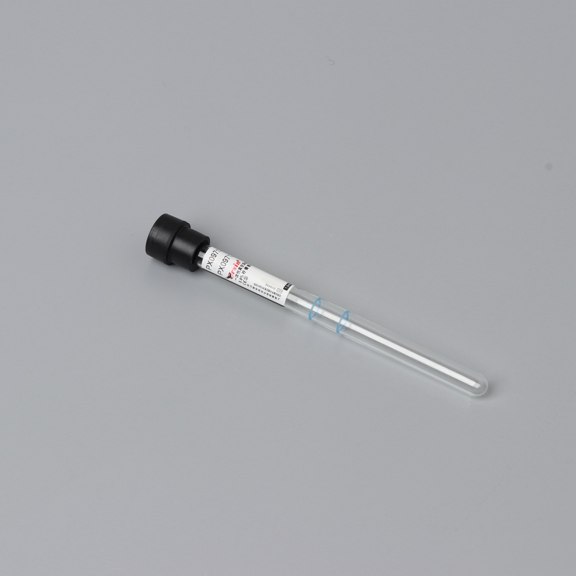 黑头管采用 0.129mol/L 柠 檬酸钠缓冲体系对血液标本进行抗凝 , 用于“魏氏沉 降法”进行血液沉降速率检测。抗凝剂与血液的体积比为 1:4 。包括提供直接标本的动态血沉管和需要标本转装的 75mm 短管。动态血沉管可在采血后直接上架读数或应用于动态血沉仪。 Black cap tubes, with 0.129mol/L sodium citrate buffer systems to carry out anticoagulation on blood specimen, are used for the testing blood sedimentation rate by Westergern method. The volume ratio between anticoagulant and blood is 1:4. They cover the dynamic blood sedimentation tube directly offering specimen and 75mm short tubes needing specimen transfer. Dynamic blood sedimentation tube may read directly on the frame after blood collection, or be used in blood sedimentation unit